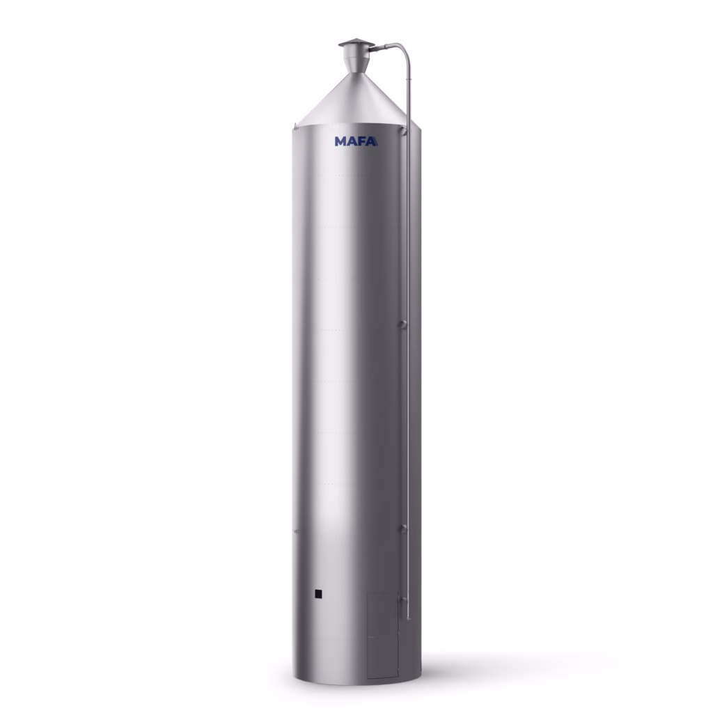 MAFA BIBI is a robust, Swedish-made silo designed for demanding industrial environments. Manufactured from durable steel plate with an aluminum-zinc coating (Aluzinc), it provides superior corrosion protection and up to three times longer service life compared to traditionally galvanized silos.