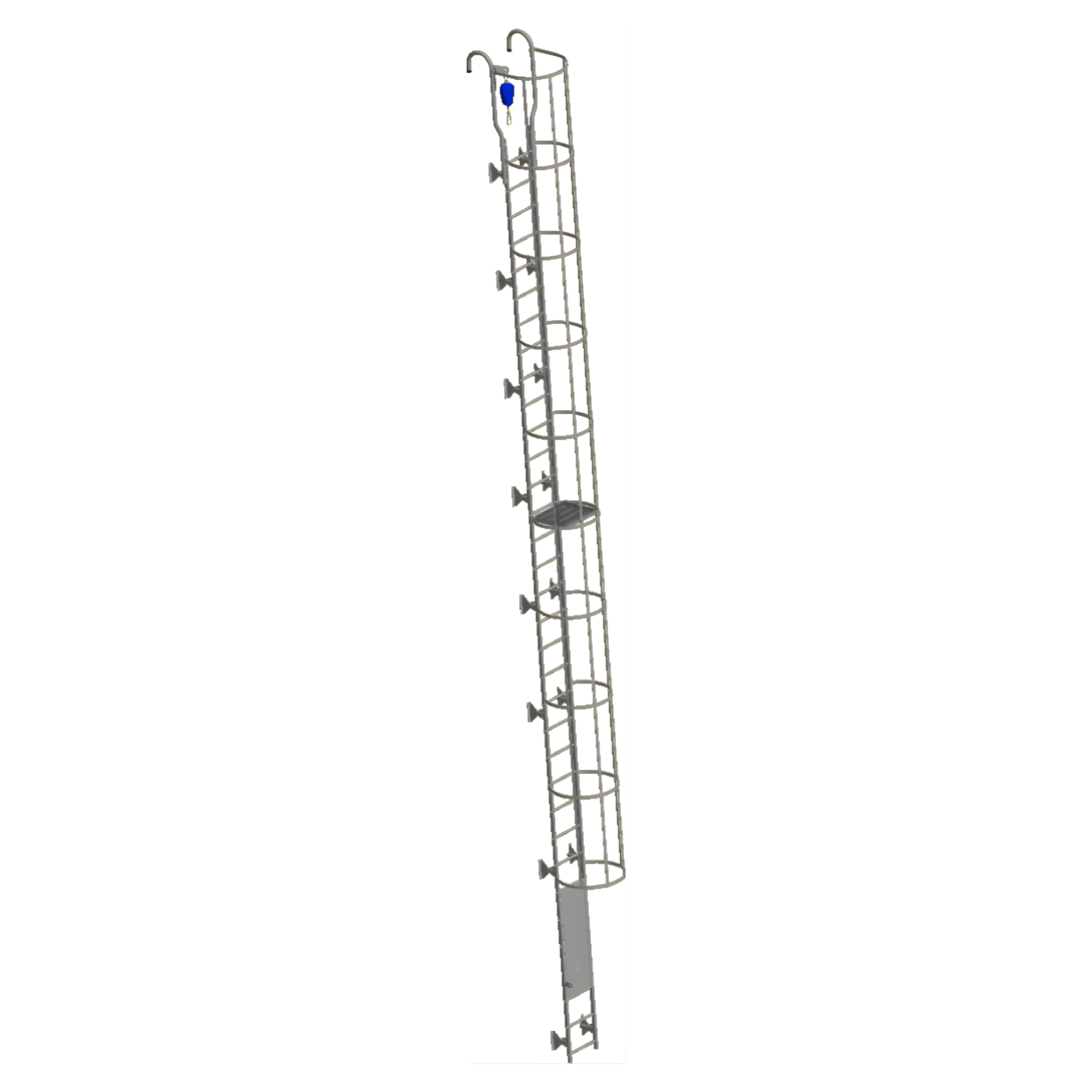 Includes upper and lower attachment, rope, and cable block. Note: Fall protection harness not included.