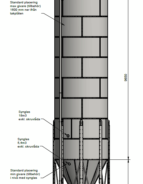 Den släta insidan säkerställer effektiv tömning och minimerar driftstopp, medan standardutförandet klarar material med volymvikt upp till 750 kg/m³. För tyngre biobränsle eller särskilda processkrav kan silon anpassas för högre belastningar. Läs mer