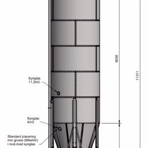 NOTE, the silo is delivered as standard with a filling pipe, cyclone with filling via long-radius bend, and a sight glass.