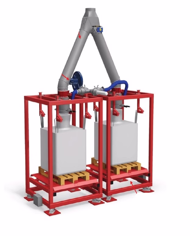 If the bag height allows, no operator platform is required, making the system compact and space-efficient. The enclosed filling system ensures a dust-free environment for the operator.