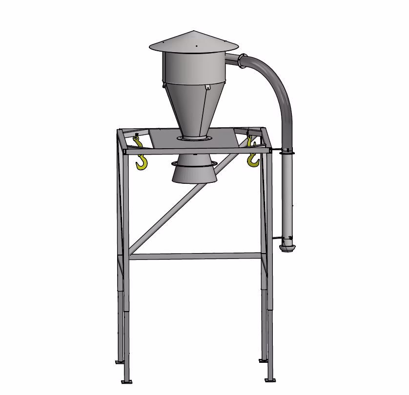Connect the air inlet to the filling pipe and blow the material through the cyclone, where it gently falls into the bulk bag. This process ensures smooth and gentle material handling during filling.